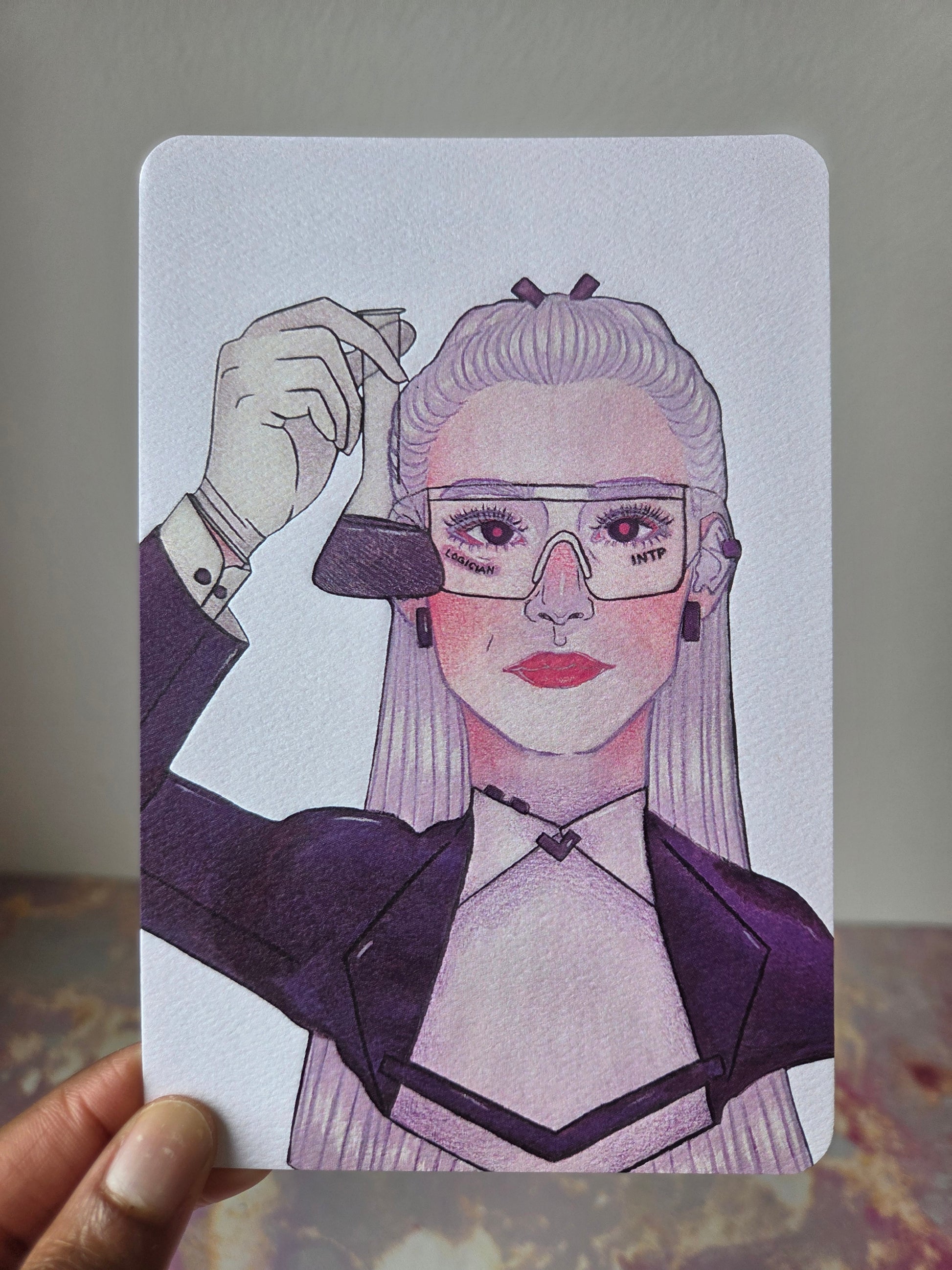 A mini art print of the original watercolor painting "Logician" by Nightowl Doodles that is part of the 16-piece mixed media painting series "MBTI Personality Types." The art print is 4x6 inches in size and is printed on textured paper to replicate the feeling of an original watercolor painting.