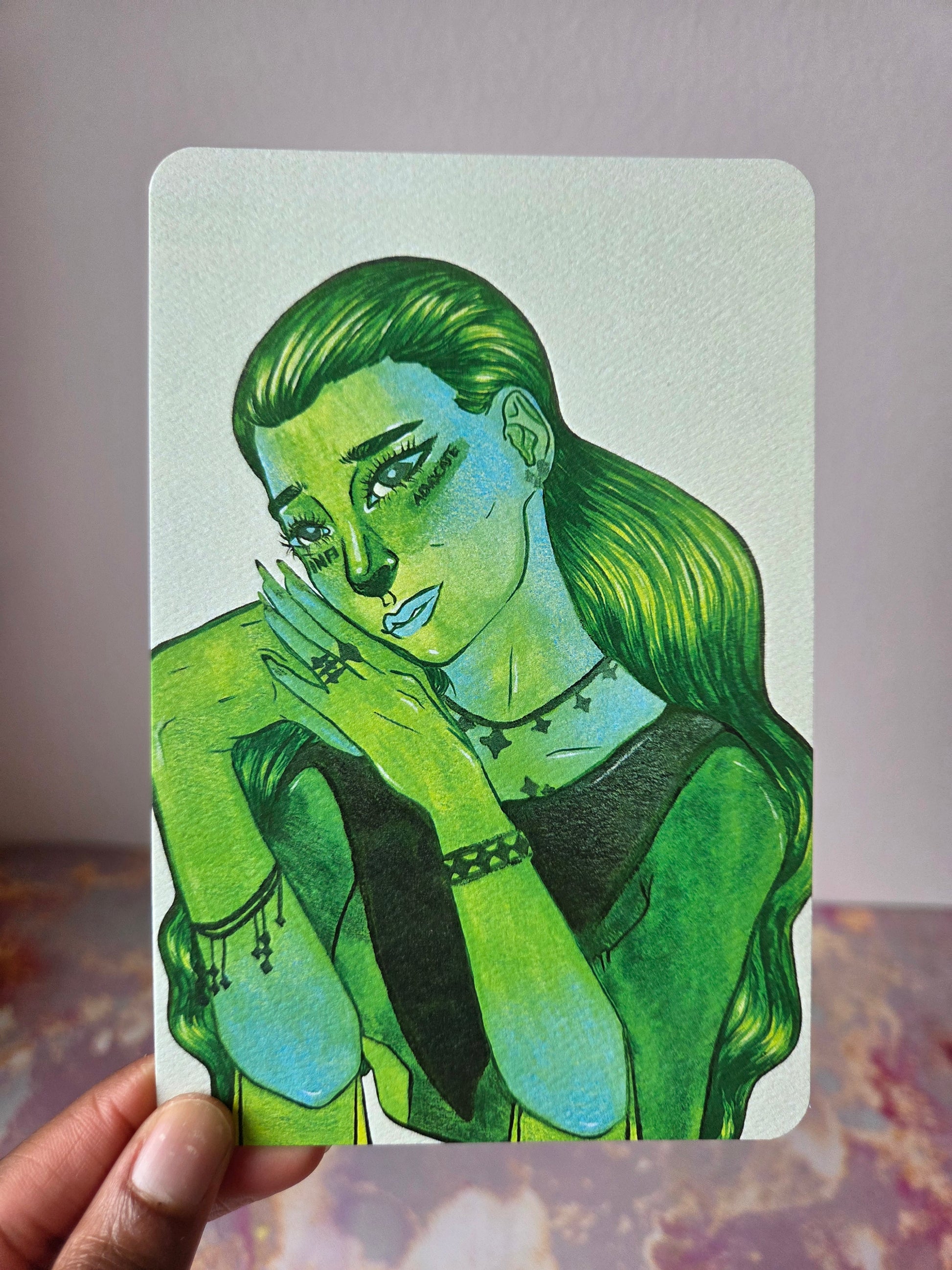 A mini art print of the original watercolor painting "Advocate" by Nightowl Doodles that is part of the 16-piece mixed media painting series "MBTI Personality Types." The art print is 4x6 inches in size and is printed on textured paper to replicate the feeling of an original watercolor painting.