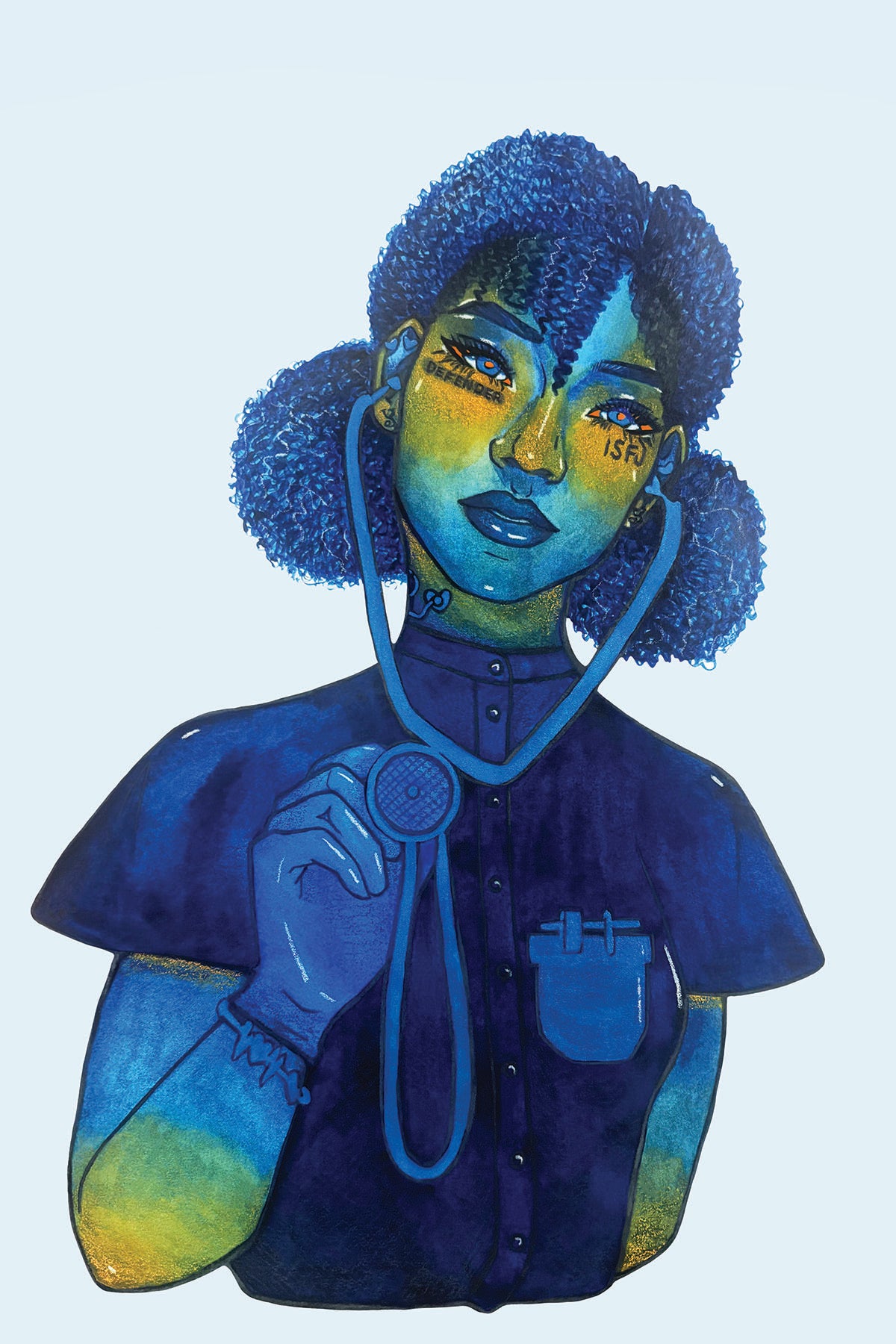 A mini art print of the original watercolor painting "Defender" by Nightowl Doodles that is part of the 16-piece mixed media painting series "MBTI Personality Types." The art print is 4x6 inches in size and is printed on textured paper to replicate the feeling of an original watercolor painting.