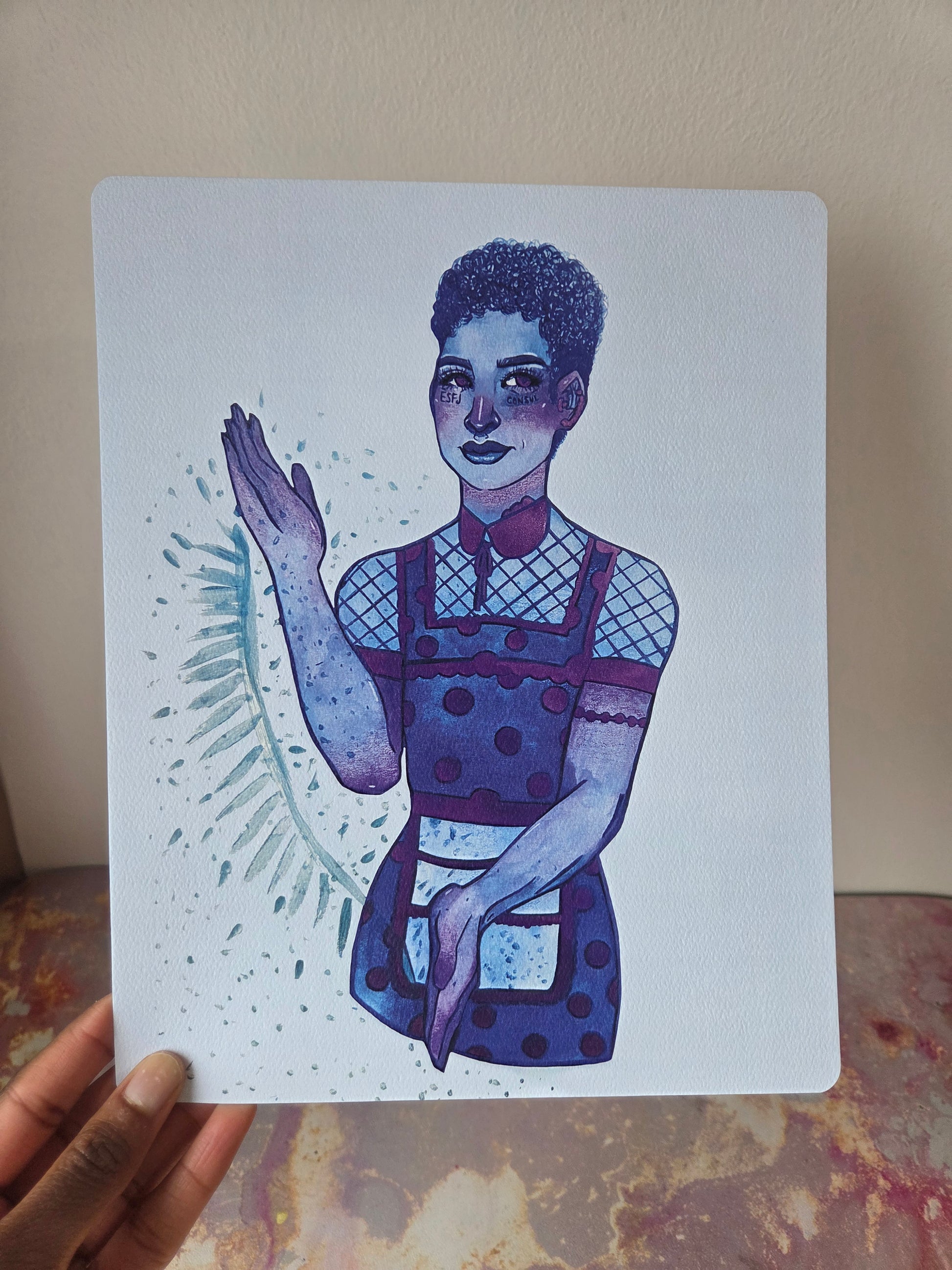 A large art print of the original watercolor painting "Consul" by Nightowl Doodles that is part of the 16-piece mixed media painting series "MBTI Personality Types." The art print is 8x10 inches in size and is printed on textured paper to replicate the feeling of an original watercolor painting.
