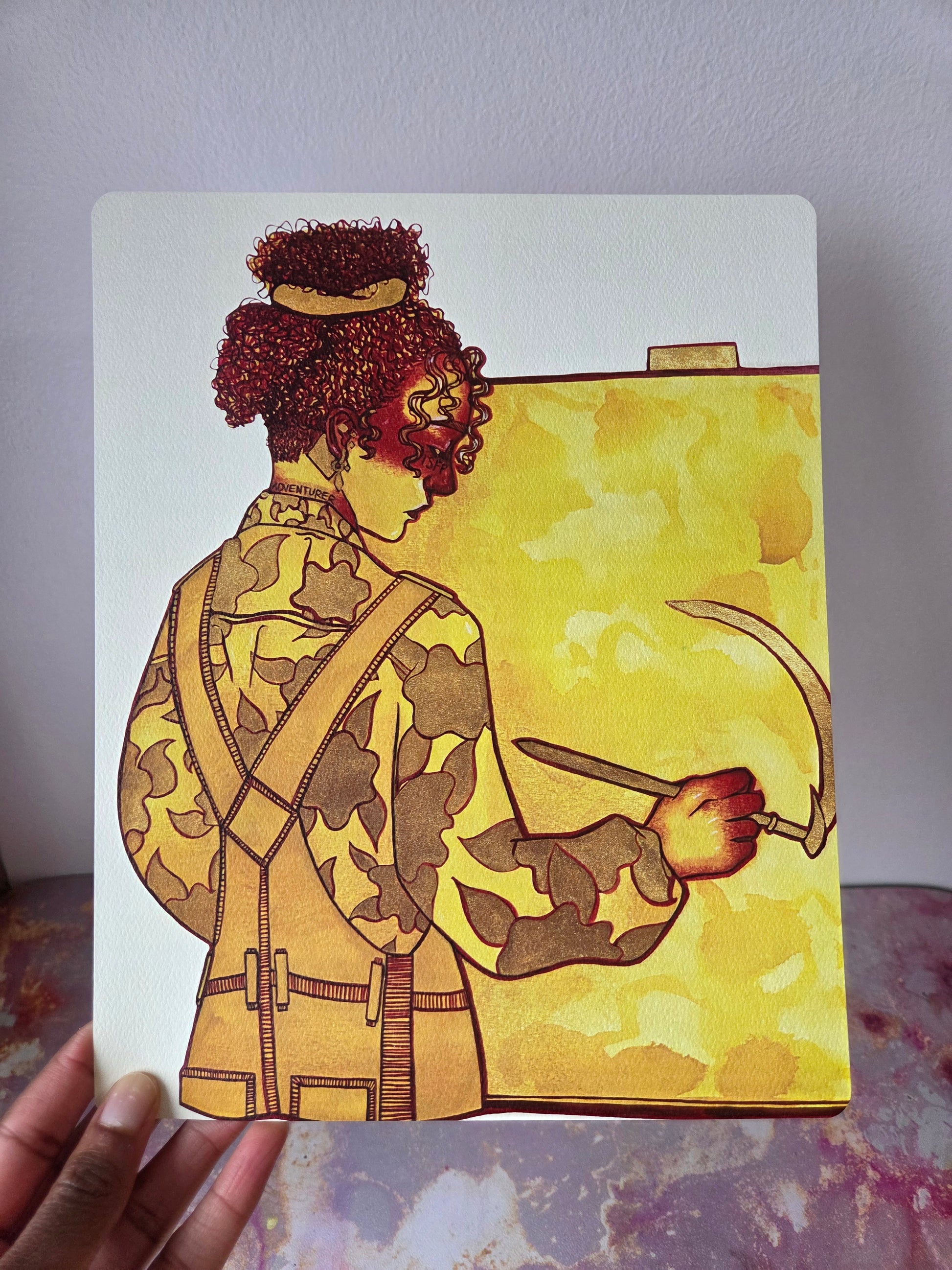 A large art print of the original watercolor painting "Adventurer" by Nightowl Doodles that is part of the 16-piece mixed media painting series "MBTI Personality Types." The art print is 8x10 inches in size and is printed on textured paper to replicate the feeling of an original watercolor painting.